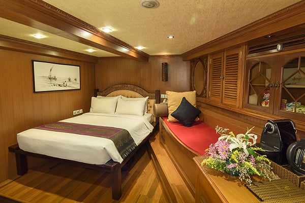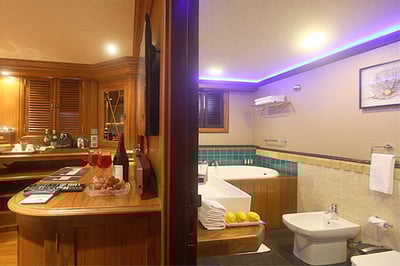 Seven inviting staterooms come with all mod cons and spacious bathrooms that feature a spa bath tub and a range of amenities.