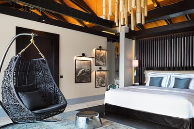 Forty-five expansive villas are set on the beach surrounded by greenery or over the lagoon, offering maximum privacy. Interiors are sophisticated and feature sumptuous furnishings, luxurious outdoor bathrooms, pools and butler service. Accessible only by boat, the Romantic Pool Residence is ideal for honeymooners wanting to indulge. It comes with its own gym and spa. Family accommodation is available.