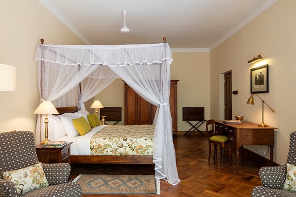 Kick-off your shoes and pad the polished wooden floors of your Ceylon Tea Trails property barefoot, as here you’ll find an absolute home-from-home. While the rooms are all immaculate in this luxury hotel in Sri Lanka, the verandas are our favorite spot here, with their colonial styling and incredible views. The drawing rooms, with cozy fireplaces, board games, and books, are also a top spot in which to unwind.