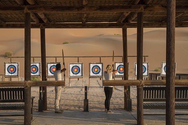 A myriad of activities is on offer at Qasr Al Sarab Desert Resort. Guests can watch desert wildlife grazing below as they chill in the pool, play tennis, try archery or enjoy a pampering treatment at the exotic spa. Excursions such as thrilling desert adventures in a 4×4, camel trekking and desert sailing can also be arranged.