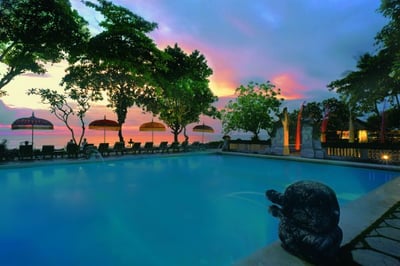 The Oberoi Beach Resort in Bali is a luxurious beachfront resort located along the vibrant Seminyak coastline in southwest Bali. With 74 rooms, this retreat is a stone's throw from the beach and spans acres of tropical gardens, offering a serene escape from the nearby bustling Seminyak. Guests can indulge in a varierty of activities such as rejuvenating spa treatments, yoga sessions, surfing and exploring nearby cultural attractions.