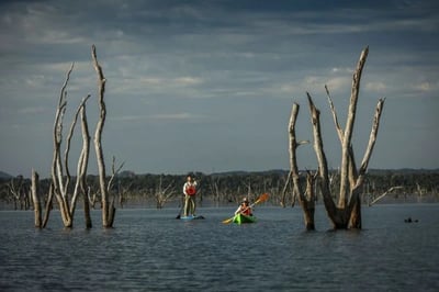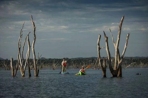 - Canoeing along crystal clear pools, only reachable by boat