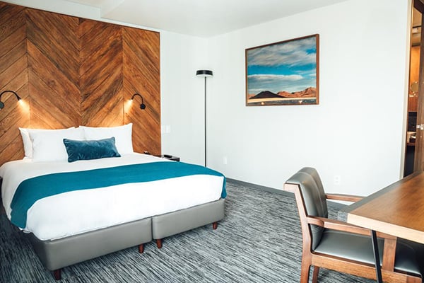 The striking façade is clad in Bolivian wood and Comanche stone. Inside, the guestrooms and suites are elegant and contemporary with alpaca blankets and artworks. The Atix Suite has a separate living space, bathtub and Jacuzzi, and exclusive artworks.