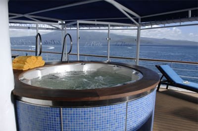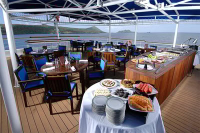 La Pinta features 24 spacious and elegantly designed cabins featuring plush furnishings and floor-to-ceiling windows with magnificent views. When it comes to dining La Pinta offers a delectable menu of international and traditional Ecuadorian dishes that can be enjoyed al fresco on the deck on in the dining room.