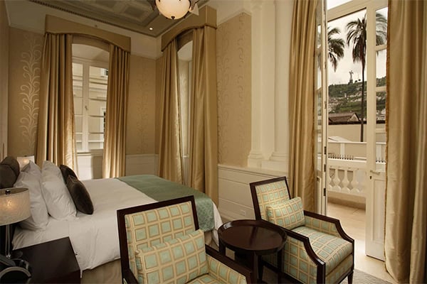 Casa Gangotena’s eclectic style combines understated opulence with traditional Ecuadorian influences to create a magnificent, luxury boutique hotel. The spacious and exceptionally elegant rooms feature high ceilings, art deco-style furniture, and large marble bathrooms.