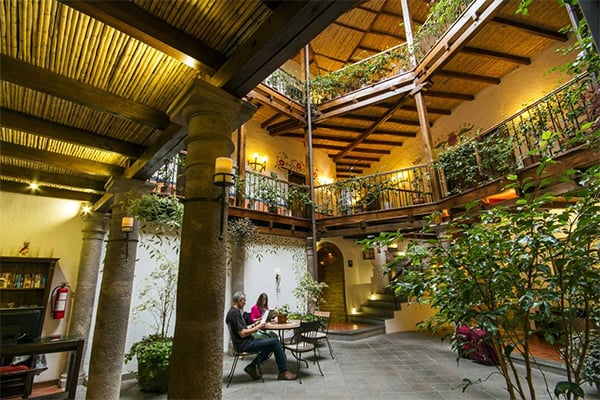 The ground floor lobby houses a breakfast area and restaurant serving authentic Ecuadorian cuisine, along with some cozy nooks for sitting and reading. There’s also a small lounge on the top floor overlooking the rooftops of Quito.