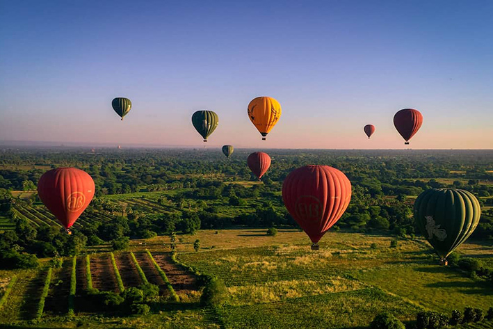 Get a bird’s eye view of Bagan by enjoying a ride at sunrise or sunset over the ancient city in Myanmar. Drive to the launch site in a romantic converted vintage bus, before you take to the air to view temples as far as the eye can see. The pilot will take you to a picturesque landing spot where you can toast your journey with a glass of bubbly.