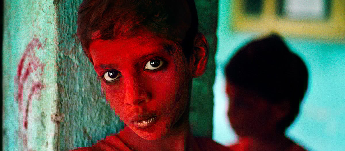 “I took this image on a visit to Bombay during Ganesh Chaturthi. I was looking for opportunities when I came across this boy drenched in red powder. He and his friends threw the powder all over me as soon as they saw me. After a few pictures he got really serious. It was a brief encounter, but maybe he felt this was something important. The intensity of his expression is extraordinary. I think the simplicity creates this timeless quality. It is far more important to just be in the moment, to be aware of your surroundings, and to be prepared to seize the moment when it presents itself.”