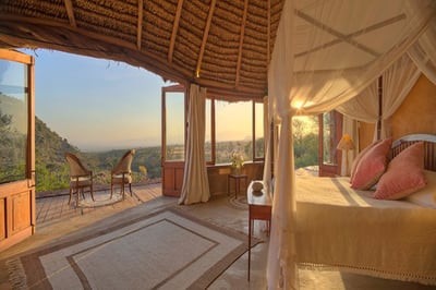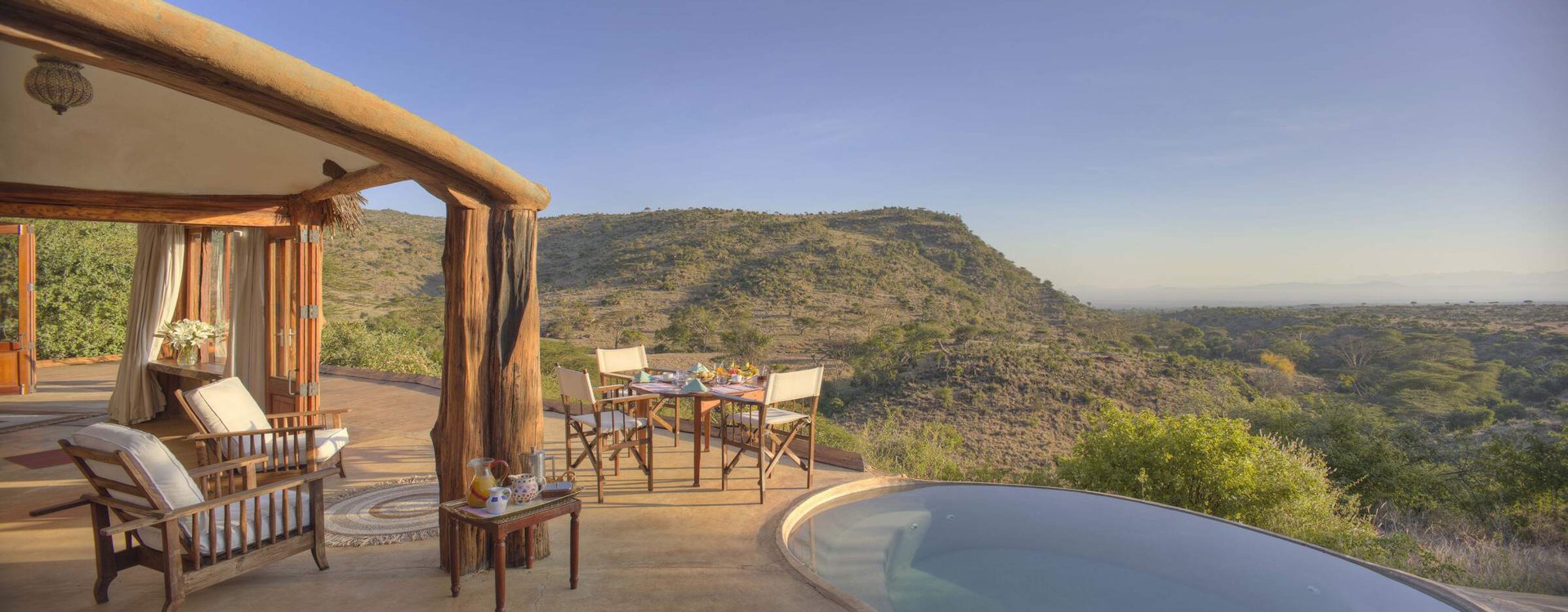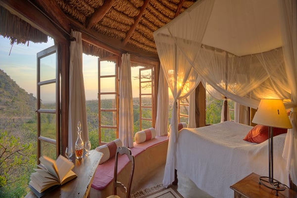 Have breakfast under the trees, sundowners on the cliff, fill your days with activities, and feel like part of the family at wonderful Lewa Wilderness. Accommodation is in nine individual cottages that are perfect for families or small groups. Meals are served in the open-sided dining room, where guests can watch wildlife during the day and listen to the sounds of the African night over dinner. There’s also a lounge and bar, ideal for swapping stories and stargazing.