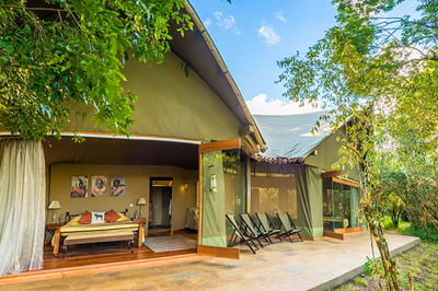 Sala’s Camp in Kenya's Maasai Mara houses seven large new tents and accommodates up to 22 guests, perfect for a family vacation. The location here is excellent; close to the Northern Corridor where millions of wildebeest pass through during the yearly migration. It’s also within close proximity to Tanzania’s Serengeti National Park, just over the border.