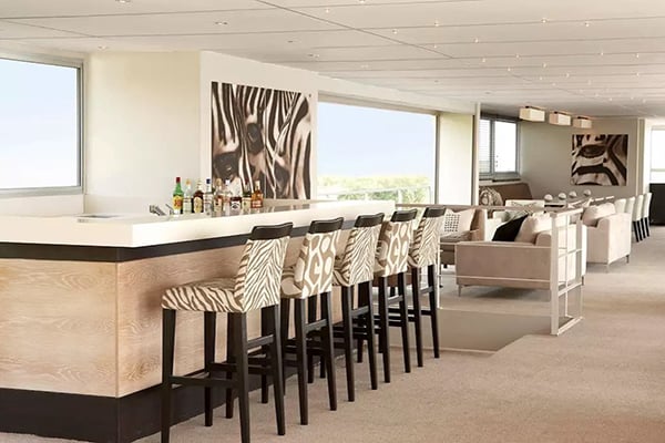 Cruising through the untamed waters of Africa's Chobe River which dissects Botswana, Namibia, Zimbabwe and Zambia, the Zambezi Queen takes you on a one-of-a-kind African safari in your own private suite, aboard a luxurious houseboat. The ship’s two-and-three-night itineraries depart from Kasane in Botswana and travel along the banks of Chobe National Park.