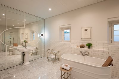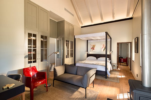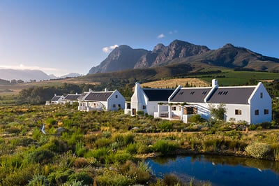The 9 One-Bedroom Farmhouse Suites are set beneath a copse of trees and combine authentic architecture with modern design: refined and moody. Each suite provides an expansive living and sitting area with an in-room fireplace. Set adjacent to a 3,5 hectare cultivated fruit and vegetable garden, the Garden Cottages (six one-bedroom suites, as well as three one-bedroom cottages and four two-bedroomed cottages) are characterised by thick whitewashed walls, elegant gables and hearty fireplaces that emulate an authentic farm stay experience.