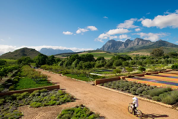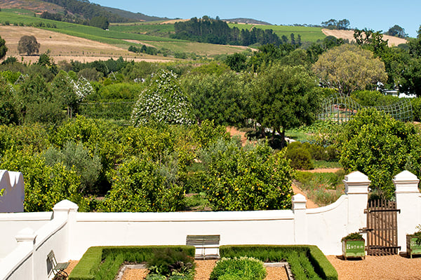 You can enjoy the private gardens, guided walks around the farm through the vineyards and orchards and up the Babylonstoring Koppie, cycling, canoeing/rowing and fishing on the farm dams. As the kitchen gardens have been extended, all of the produce can be grown on the farm and you are invited to help out in harvest season and join in as much as you would like to. You can enjoy the new sundowner experience – up into the hills beyond the farm in a landrover and where it is possible to see as far as Table Mountain as the sun slips beyond the horizon.