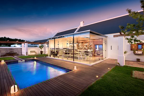 Nestled at the foot of the Simonsberg and Franschhoek mountains, the Fynbos Family House is an elegant, exclusive-use home in Cape Dutch style in the heart of the Cape Winelands.