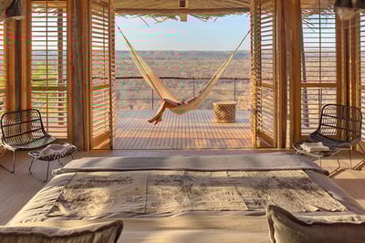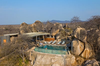 “Despite fascinating wildlife and intriguing landscapes, Ruaha sees few visitors compared to Tanzania’s northern parks, so a stay here feels special from the start. The obvious stand-out of this property is the unique design. Standing high on a rocky outcrop, granite boulders are integral to the lodge and the communal areas are accessed by wooden walkways. The lounge, bar and restaurant, which are raised on stilts, are cool, calming, and offer expansive views.”
