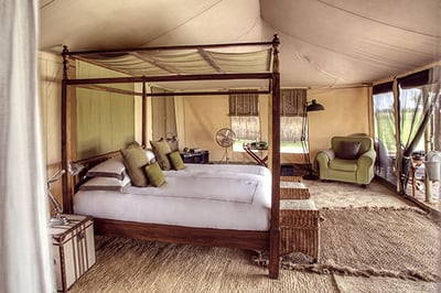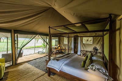 It accommodates up to 10 guests in 5 tents (3 with king-size beds and 2 with twin beds) decorated in a safari chic style with a combination of classic and modern styles. Each tent comes with dark wood furnishings, a four-poster bed, an ensuite shower room with flush toilet and all modern amenities. A camp bed is available for 1 child aged 10 or over.