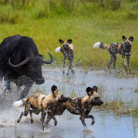 Today you’ll fly to Moremi Game Reserve where you’ll be greeted by more than 4871 square kilometres of savannah, winding waterways, and dense forest.