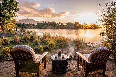 TIme + Tide Chongwe Camp is set beneath a canopy of winterhorns at the confluence of the Zambezi and Chongwe Rivers.