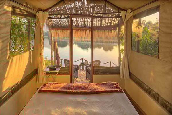 The nine standard tents are light and airy, furnished with local textiles and sumptuous linen. Each has a large outdoor bathroom with hot and cold running water, shower and loo. The tents also have their own private veranda overlooking the river, making them an ideal place for relaxation and siestas in the afternoon. Albida Suite is a two- bedroom suite accommodating up to four people, making it ideal for families or friends travelling together. Cassia Suite is the perfect choice for honeymoons and romantic couples as it’s ultra-private and comes with its own private butler and outside bath tub.