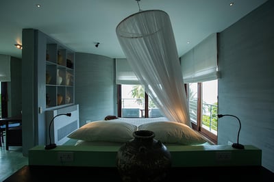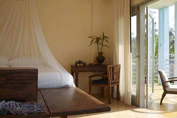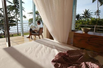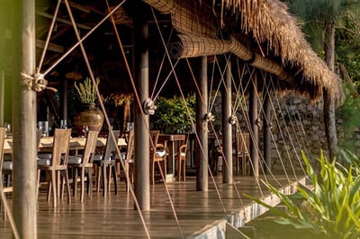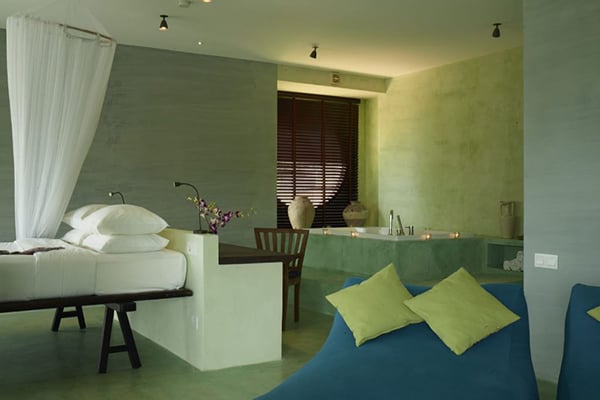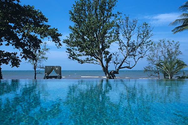 The homely environment of Knai Bang Chatt in Cambodia is understated, rustic, minimalist, and inviting with earthy tones, pebble paths, and weathered furniture. The feel is warm and shabbily chic with no airs and graces, indeed you feel as if you've stepped back to an Asia of twenty years ago. The sea-view infinity pool with its loungers is a lovely place to hang out, and the Sailing Club located next door is a well-worn favorite offering snacks and an alluring sunset drinks menu.