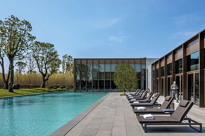 Thirteen villas and 1000 trees were relocated from a province 700km away to create Amanyangyun, an hour away from central Shanghai in China. One of the resorted villas is set up as a cultural center, including staff who can talk you through the renovation process. Apart from being a beautiful hotel, the activity schedule here is also very impressive and includes children’s activities such as pottery, paper cutting, and calligraphy. We also recommend taking out the free bikes to explore the surrounding area.