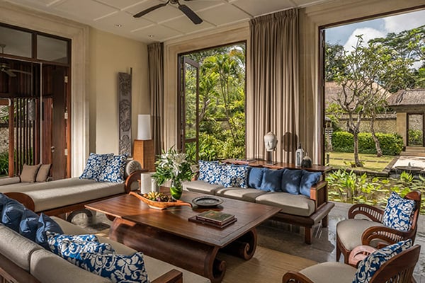 Inspired by traditional Balinese architecture, the Resort’s 156 villas and residence villas are housed within free-standing, thatched-roof pavilions. Each villa features lush gardens, oversized indoor and outdoor living areas, a personal courtyard, and a private pool.
