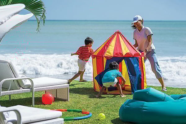 Join the beach club activities and watersports, go swimming, join cultural excursions, or try out popular Balinese cooking school classes. Several other island adventures are available for the more active guests, including ATV exploring in a village and cocoa plantation, climbing a volcano to watch the sunrise, surfing, horseback riding, or visiting an elephant park.