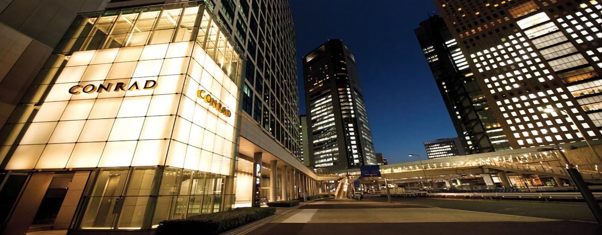 Located in the prestigious Shiodome Business District, Conrad Tokyo is a sleek, contemporary hotel set in the upper floors of a skyscraper. Blending Japanese design with contemporary luxury and the latest technology, it offers magnificent views over Tokyo’s glittering skyline.