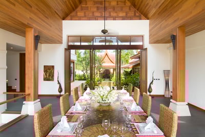 Private dining can take place at the 12-seater breakfast table or the shady beach sala. A menu serving Thai and Western options is available and gourmet fare will be served to you by your in-house chef.