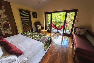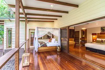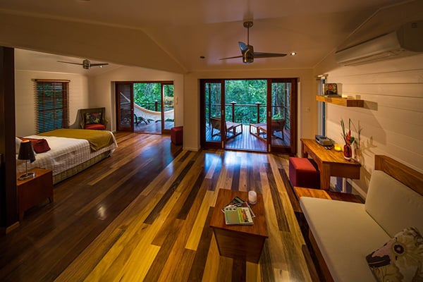 Silky Oaks Lodge is a top-class rainforest hideaway. Surrounded by trees and vegetation, the treehouse rooms are romantic and cozy and make for a fun and unique stay while immersed in nature. A highlight here is the chance to swim in the river at two billabong locations. Canoes, kayaks, snorkels, and bikes are also available for complimentary use.