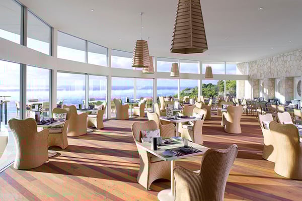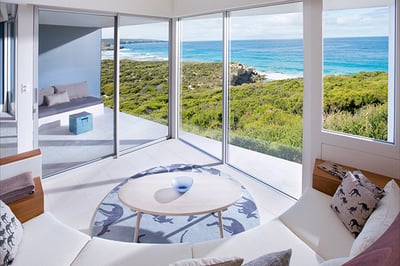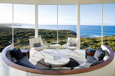 The architecture of this lodge is out-of-this-world. From the moment the double doors swing open upon arrival you’re transported into a luxurious escape of limestone, warm timbers, and views of the ever-changing sea. The suites, which stretch along the clifftop, also come with floor-to-ceiling windows allowing cinematic views of the coast and wilderness.