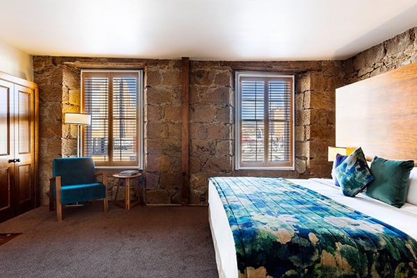 Guests enjoy a complimentary art and history tour of the building, plus there’s plenty to keep you occupied in the region, including Mount Wellington, Coal Valley vineyards, and the Bonorong Wildlife Sanctuary.