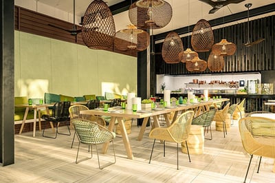 Six Senses’ Fiji is home to a lush hilltop, rocky headlands, and a magnificent beach frontage facing the South Pacific. Running completely on solar power, the largely taupe and cream-toned resort features 24 private pool villas and 60 luxury residences available in 3,4, and 5 bedroom configurations. All villas and residences feature sun decks with a private pool, outdoor showers, and locally-inspired amenities, ideal for a relaxing Fijian retreat.
