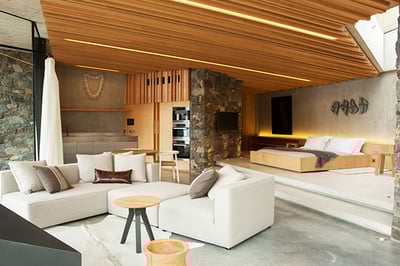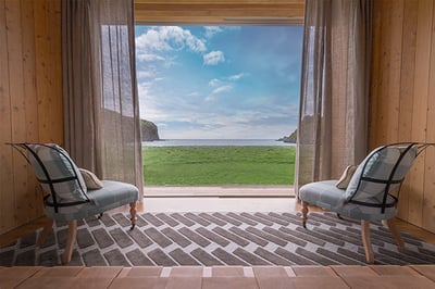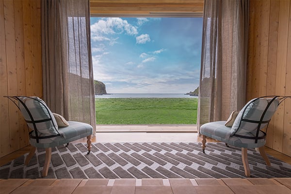 As you approach the bay, with its dark pebbles and azure waters, it’s clear you’ve entered a unique territory. The turf roof, stone walls, and glass façade add another dimension to the rugged landscape. Inside, the incredible view dominates the space; it appears you are floating on the open sea, immersed in its ever-changing moods, yet safely embraced by luxury and modern comfort. Feel the power of Seascape: take your time, breathe deeply, and let instinct guide you.