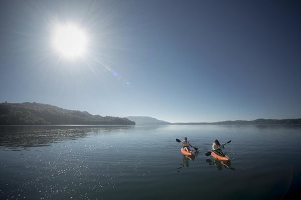 Super-relaxing, Solitaire Lodge is the second oldest lodge in New Zealand and offers a luxurious, peaceful retreat overlooking Lake Tarawera. The property boasts a rustic feel which is complemented by modern features and furnishings – the beds are especially comfortable. Dining is a dream, and guests are invited to mingle over apéritifs and canapés before dinner.