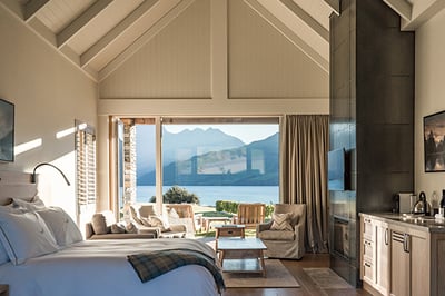 Sitting on the edge of Lake Wakatipu amidst rugged, snow-capped mountains, Blanket Bay is a secluded and luxurious lodge that epitomizes rustic chic, offering excellent service, superb facilities, and spectacular alpine views. There’s a host of unique adventures; take a helicopter flight from the Blanket Bay Helipad over Milford Sound, go jet boating, or mountain biking. It will appeal to those seeking a romantic and memorable escape in magnificent surroundings. Children over the age of ten are welcome.