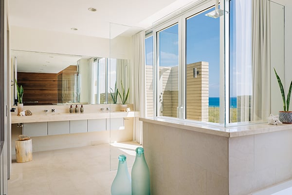 The four Ocean View Suites feature private balconies with an uninterrupted pool, garden, and sea views on each villa's second and third floors. Spacious bathrooms include twin basins, freestanding bathtubs, and separate showers; those on the third floor even offer outdoor showers. Two of the South Villa Ocean View Suites are designed for accessibility needs.