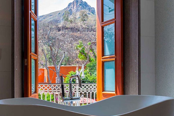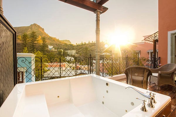 Located in a peaceful neighborhood outside of Guanajuato’s bustling center, Villa Maria Cristina boasts French-style architecture and makes for an intimate and peaceful stay in refined surroundings. The suites have a period charm with lofty ceilings, French-style furniture, polished wooden floors, and plush bedding. There’s also a nicely presented swimming pool and inner patio which is super-serene. Spa treatments are also available.
