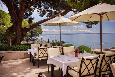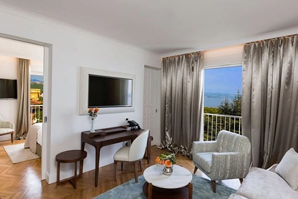 Set in a historic, Habsburg-era villa, Hotel Milenij stands in landscaped gardens and features a gorgeous terrace with views of Kvarner Bay. You’ll find refined rooms, and the hotel’s fine-dining spot, Restaurant Argonauti, serves up gourmet regional dishes. The Royal Spa offers treatments, pools, a Finnish sauna, and a Turkish bath.