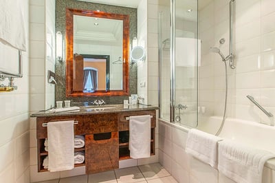 The spacious guestrooms and suites ooze contemporary luxury with exquisite materials, warm accents, and large windows overlooking the city of baroque inner courtyard. The suites offer additional space, with the Crown Prince Suite giving guests a regal experience.