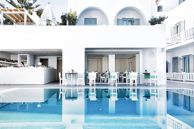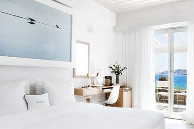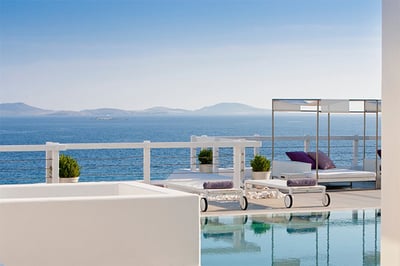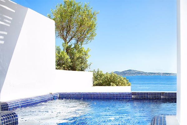 It’s all about understated luxury and crisp, clean lines at this beautiful tiered hillside retreat. A neutral color palette prevails throughout and provides a serene atmosphere. Rooms are intimate with modern conveniences, and some of the higher-grade suites include giant terraces with plunge-pools. The three four-person, two-bedroom suites are ideal for those with children or those looking for a stylish multi-gen getaway.