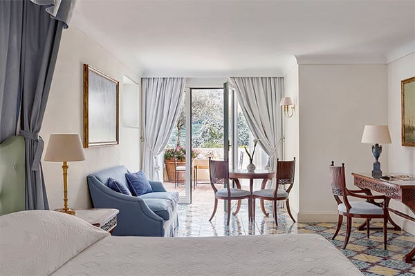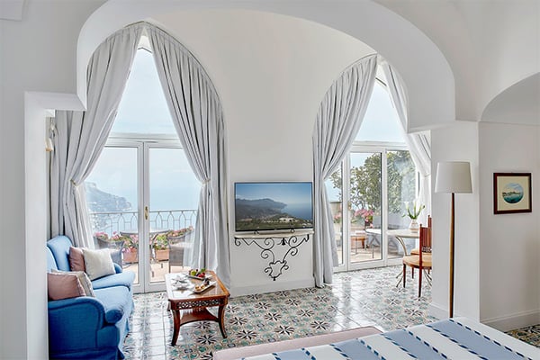 Terraced gardens are planted with rows citrus groves, rose-shaded pergolas lead through to medieval walls, and the swimming pool is out of this world. Pool butlers will bring you an iPod loaded with tunes of your choice to complement the view; and perhaps you’d like a fresh juice as you soak up the panorama?