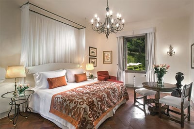With just 46 suites and bedrooms, the property is a national monument dating from the 15th century, the building’s façade having been designed by Michelangelo himself. Inside, public areas and bedrooms contain frescoes and antiques. Outside, the gardens are filled with secluded spots in which to enjoy the spectacular views. The outdoor swimming pool is heated and has a restaurant and bar alongside.