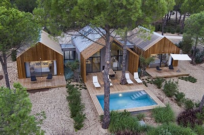 Discover all luxurious Cabana Villa options at Sublime Comporta. The two-bedroom villas offer a contemporary twist on traditional cabana houses, boasting two "Cabana Rooms" with ensuite bathrooms, a spacious living area, a fully equipped kitchen, and an indoor/outdoor fireplace. Each villa features a private pool, three decks, and approximately 3,000m2 of outdoor space, all fully serviced by the hotel. For a larger group, the 3, 4, and 5 Bedroom Cabana Villas offer expansive living areas, private pools, and breathtaking views. With floor-to-ceiling windows, each villa includes separate bedrooms with ensuite bathrooms, fully equipped kitchens, and beautiful indoor fireplaces. All villas are fully serviced for your comfort.