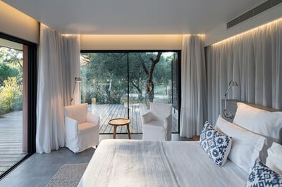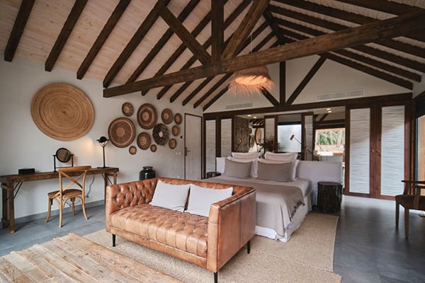 Cabana Room (In 2-Bedroom Villa): These spacious 50m2 rooms provide a nature-inspired wake-up experience. Found within the 2-bedroom Cabana Villas, they feature floor-to-ceiling windows opening onto a 15m2 private outdoor deck with stunning property views. They are equipped with air conditioning and underfloor heating.