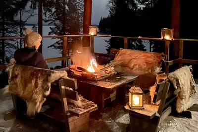 "The Outpost is a private lodge in the complete wilderness of Swedish Lapland in a small village with a population of only seven people. It is an excellent snowmobile location, and you can even snowmobile to the Arctic Circle monument. The service is great with private hosts and chef to look after all your needs"
