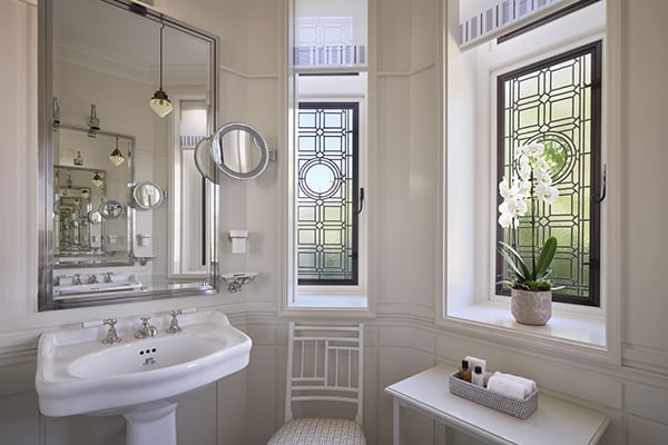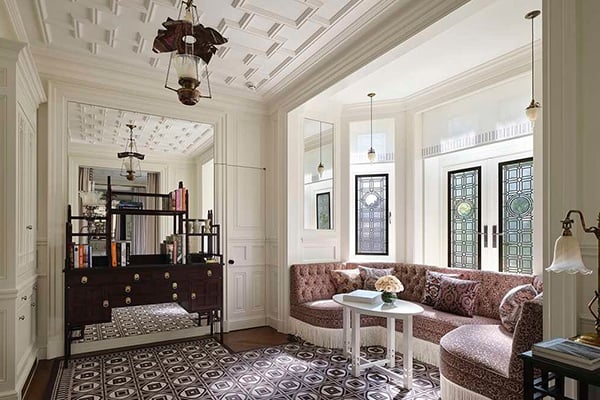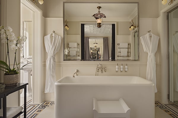 Renowned architect and interior designer François-Joseph Graf has revitalized this charming Victorian mansion, transforming its ambience from that of a quaint English house to that of a refined and discreet hotel. Drawing inspiration from the Arts & Crafts movement, the interior design features Neo-Greek accents, showcased through friezes in the vestibule, captivating mosaics, and ornate vases in the lobby. The entire space is permeated with music, creating a sensory experience enhanced by a signature scent wafting through the air.
