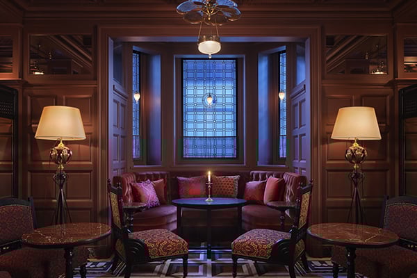 On the intimate lower-ground floor, the bar, accessible through a private entrance on Holbein Place, exudes a 'speakeasy' style. The open space, divided by Arts and crafts mirror panelling, seamlessly blends with cosy rooms. Illuminated by candlelight, guests can savour exquisite cocktails and Champagne while enjoying the tunes curated by the hotel's in-house DJ.