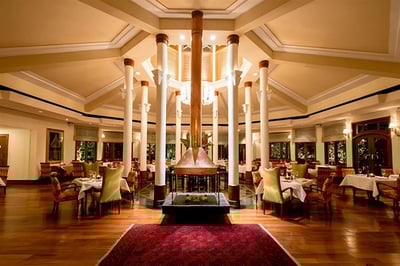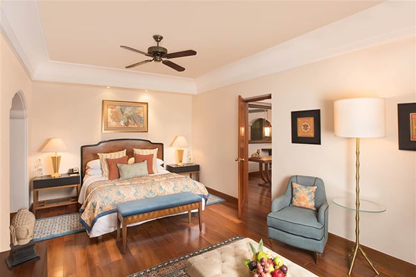 The spacious, well-appointed rooms are set away from the main palace, nestled neatly in the surrounding landscape. Each one comes with picture-perfect views and a design that expertly blends nature, style, and elegance together. The Viceregal Suite is the ultimate in style with a wraparound balcony and valley views, Persian rugs, a grand bathroom fireplace and antique four-poster bed.