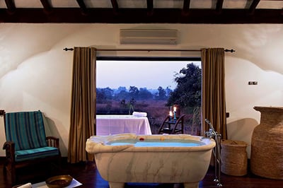 Samode Safari Lodge is five minutes away from the entrance to the Bandhavgarh Tiger Reserve (Ghori Gate). The private villas, complete with spacious bedrooms, a separate living space, dressing area and private veranda live up to the exceptional Relais & Chateaux standard. In addition, the naturalists here are incredibly well-informed and their knowledge really contributes to the ultimate safari experience that guests receive here.
